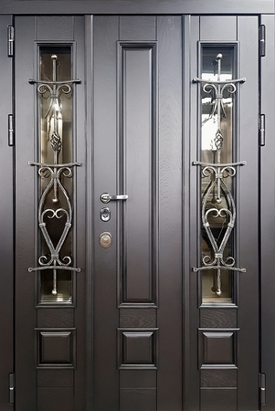 Полуторная входная термодверь МДФ шпон с двойным остеклением и решеткой